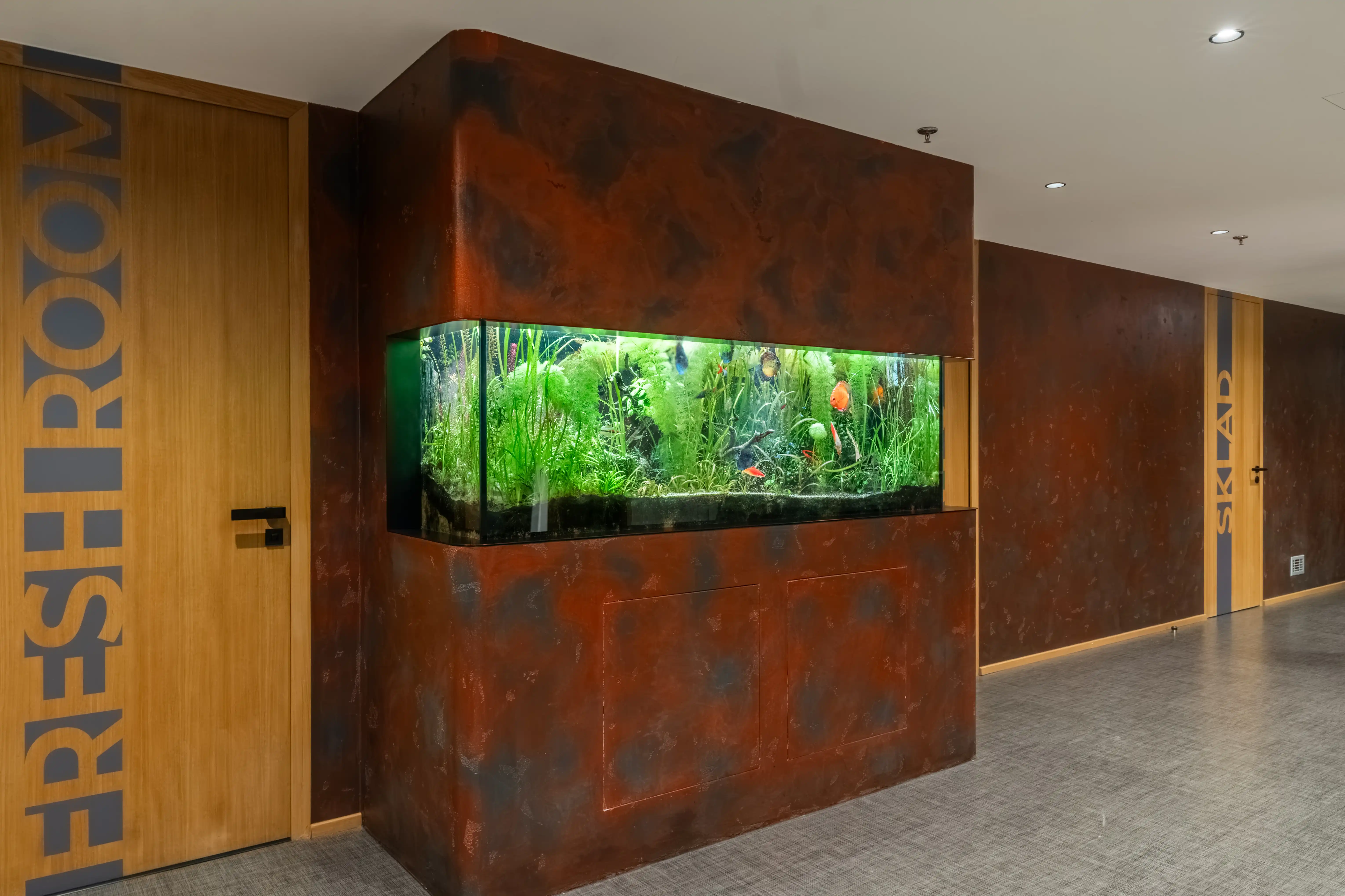 Sladkovodní akvárium v lobby firmy bylo navrženo jako uklidňující a přívětivý prvek pro návštěvníky. Bohatá zeleň a přirozená kompozice vytváří svěží atmosféru a zpříjemňuje čekání na schůzku. Akvárium působí lehce, harmonicky a přirozeně zapadá do veřejného prostoru.